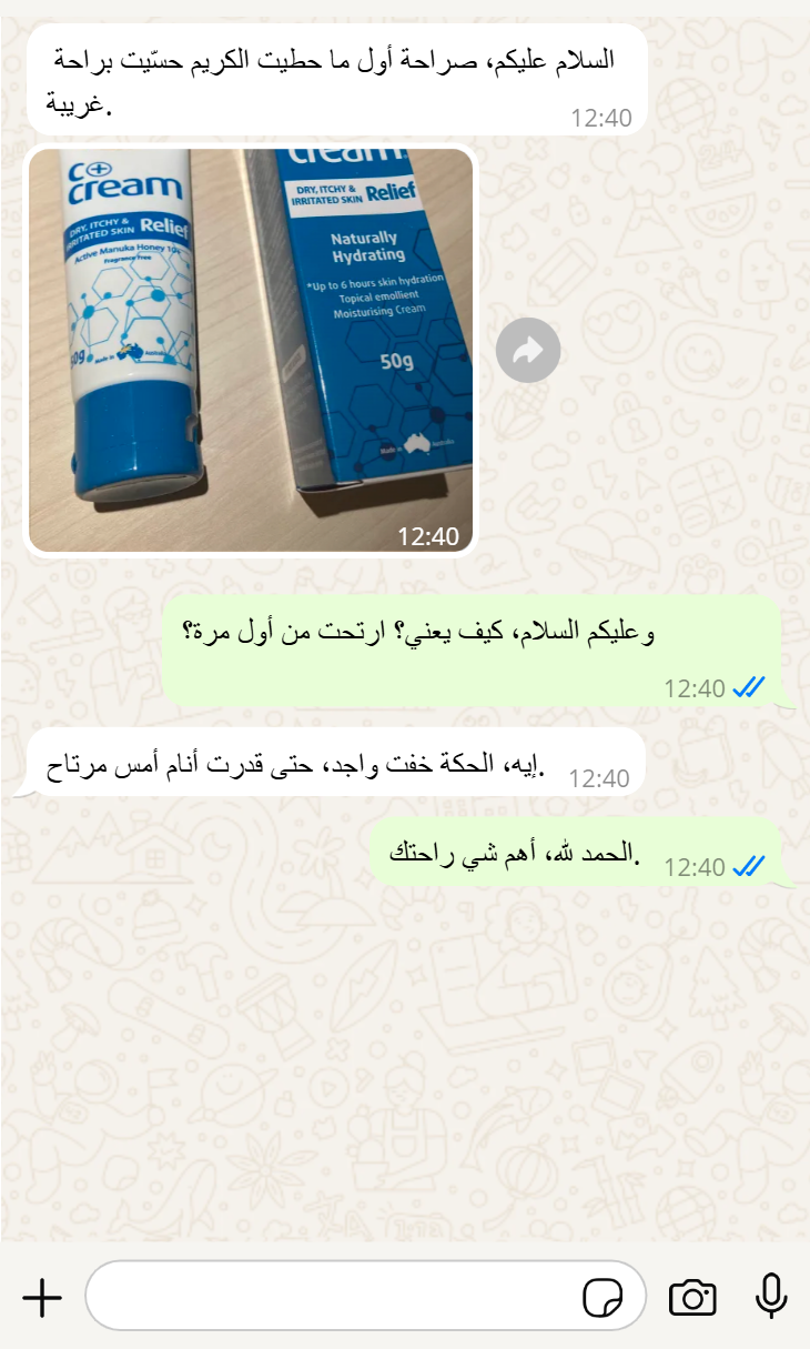 كل يوم كنت أحس بالألم، وكل خروجة كانت تصير كابوس. بس من يوم بديت أستخدم الكريم، بشرتي بدأت تهدى… وأخيرا حسّيت بالراحة النفسية اللي فقدتها من سنين.