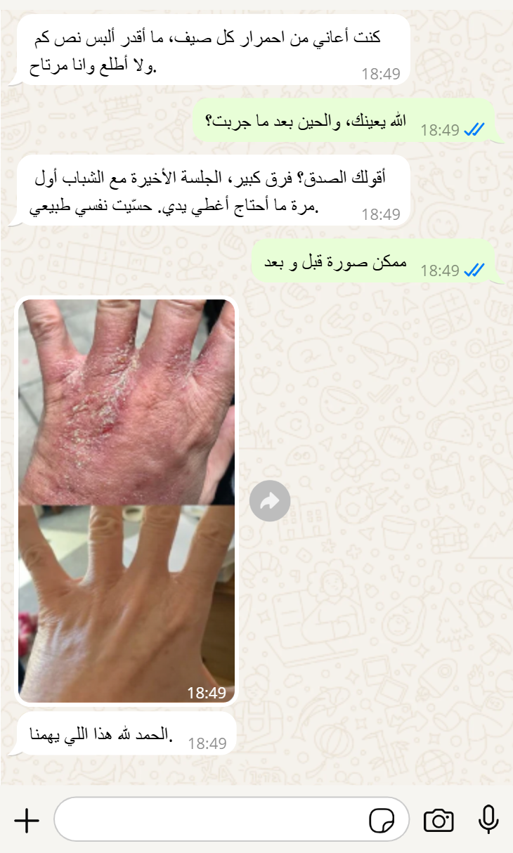 أنا أب، وما كنت أقدر حتى أحضن أولادي من كثر الحكة… والآن؟ أحضنهم بدون ألم وبدون إحراج.